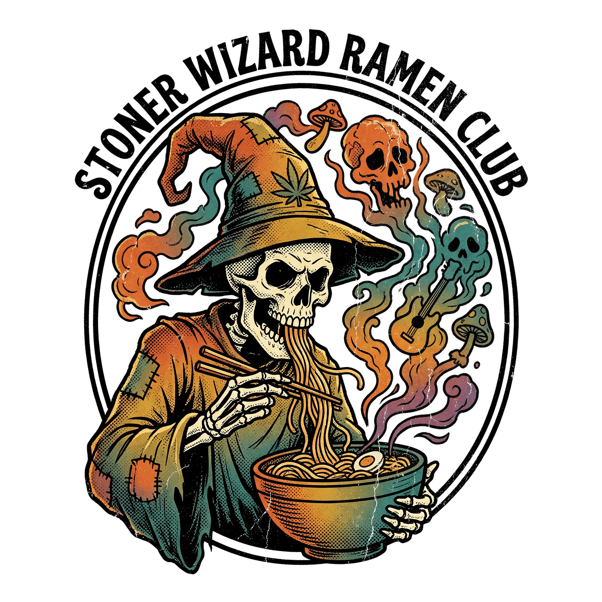 Stoner Wizard Ramen Club: Dark Humor Apparel Graphic